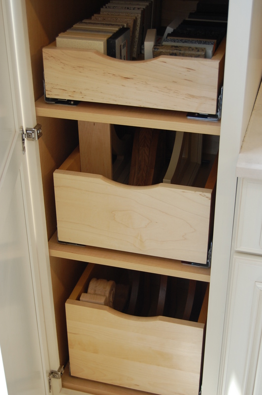 Accessories can really make or break the everyday function of a well planned kitchen. For example, cutlery dividers made for your drawer will keep you from having to buy 3 different plastic ones because they just don’t fit right. Roll out trays are especially convienent. If you want to see whats in the back of the cabinet, just roll it out. Roll our trays are great for bad backs, as well. Trash can pull outs are a must to hide that unsightly garbage. These are just a few of the many accessories we offer here at Great Kitchens.